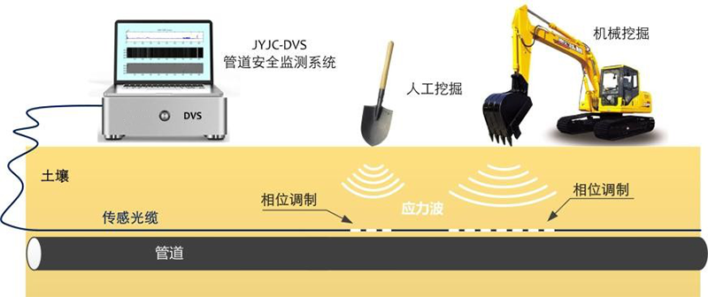 監(jiān)測那些有可能對管道安全運行造成威脅的外界入侵事件,如第三方施工挖掘。在入侵事件發(fā)生的第一時間進行報警、定位、事件類型分析,幫助業(yè)主及時排除安全隱患。